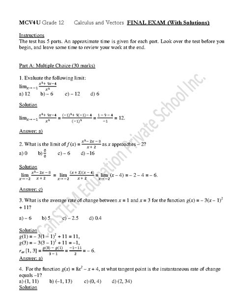 Download Grade 12 Nelson Calculus Vectors Solutions Library Binding